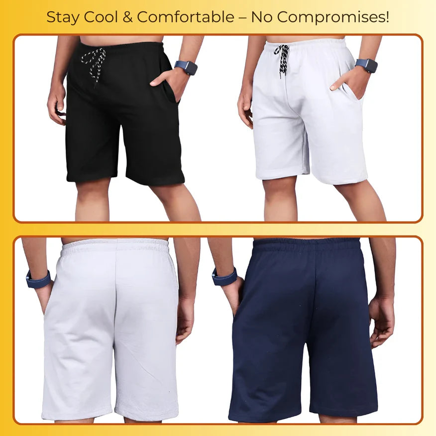 Beat the heat this summer with theĀ Combo of 4 Men's Stretchable Cotton ShortsĀ , designed to keep you cool, comfortable, and stylish.